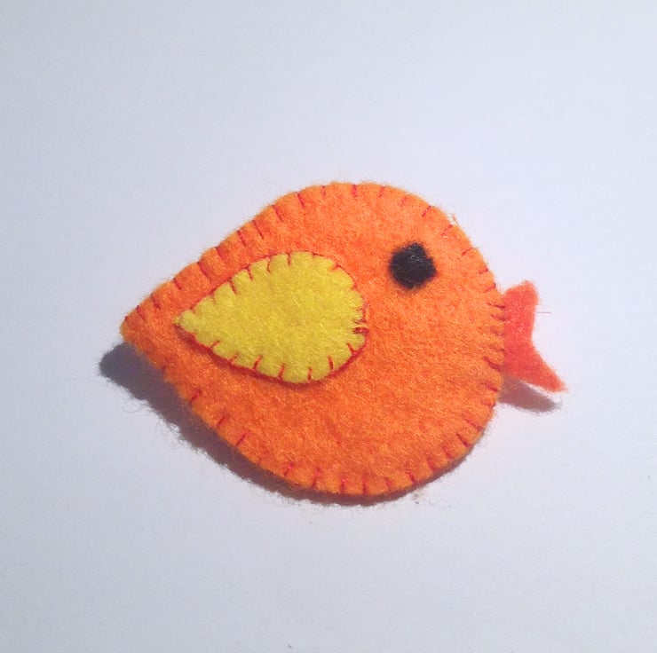 This cute bird brooch has been lovingly hand stitched from felt. It measures approximately 58 mm wide and 40 mm high and has a silver plated brooch fastening.