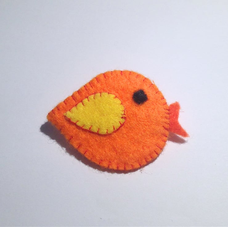 This cute bird brooch has been lovingly hand stitched from felt. It measures approximately 58 mm wide and 40 mm high and has a silver plated brooch fastening.