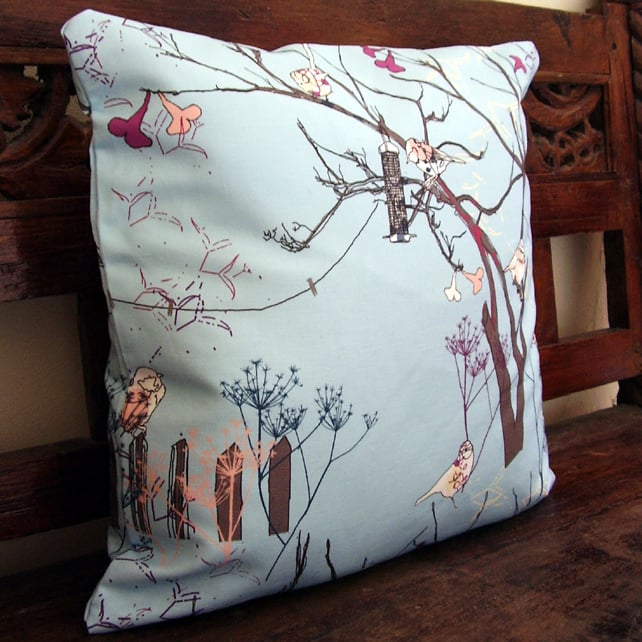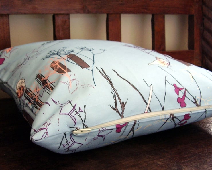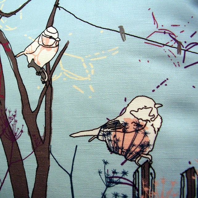 My original littlebirdy design has been digitally printed onto high quality linen-cotton canvas and then machine sewn by me into a cushion cover with zip fastening.