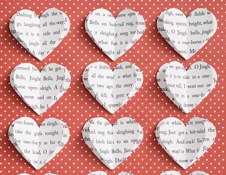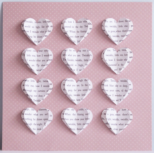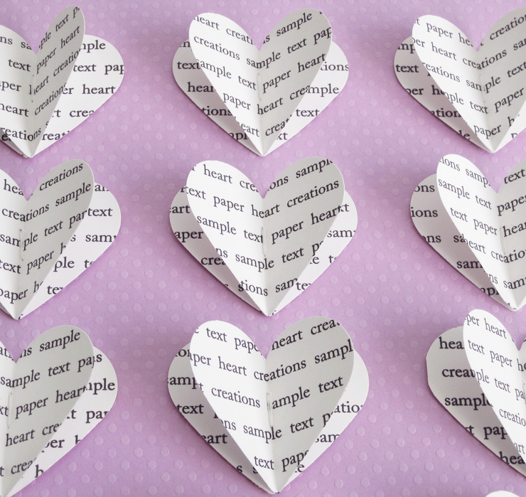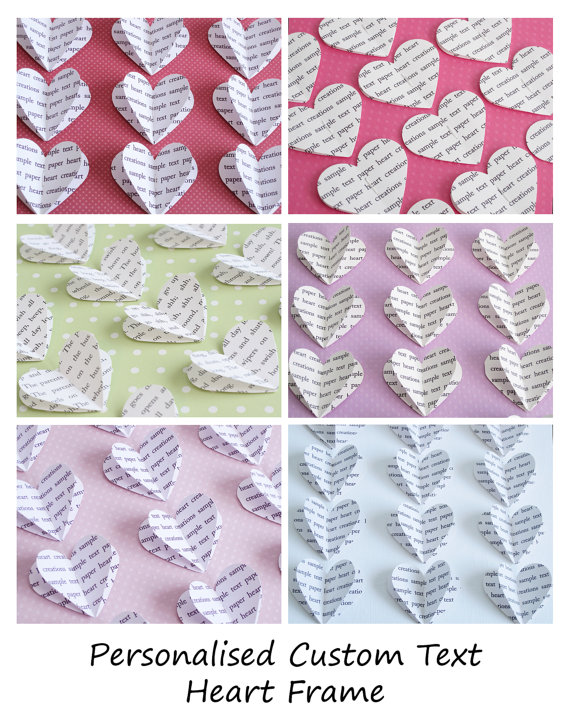 HEARTS - The 2 inch hearts are cut from a high quality card that will have your choosen words printed on. They are layered to give a 3D effect with text reading continuously from left to right.