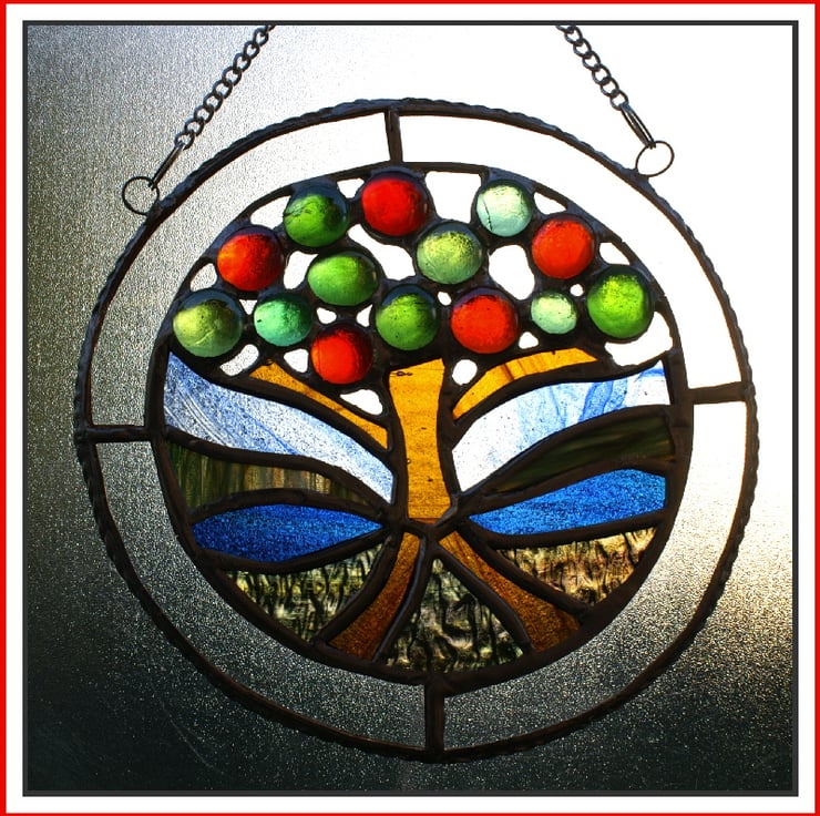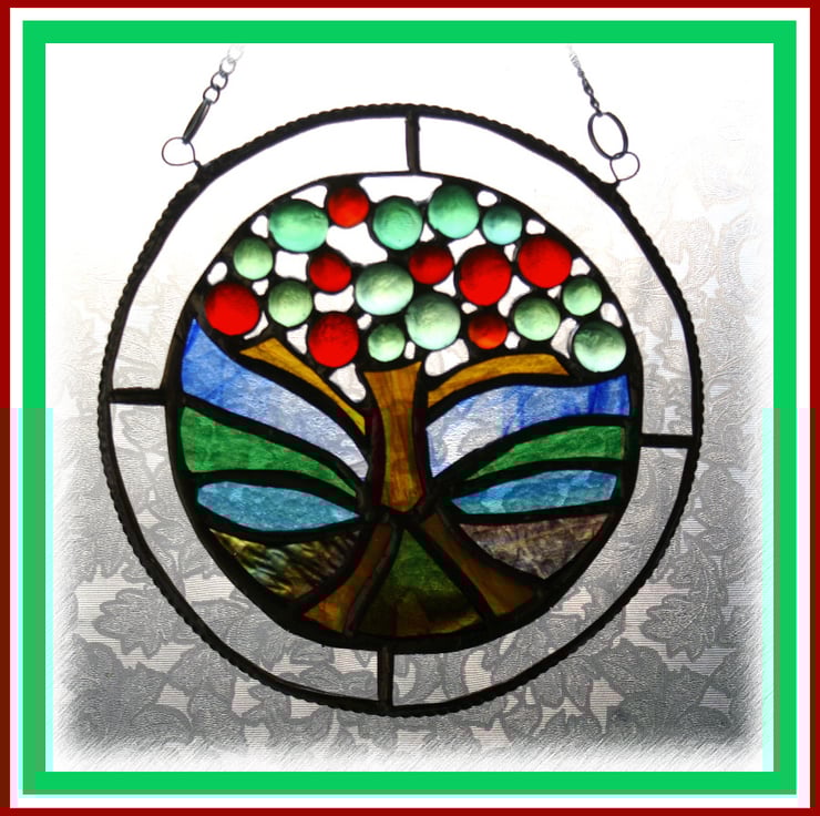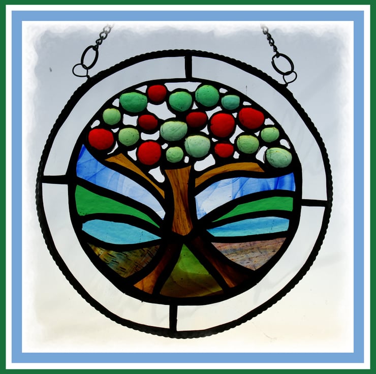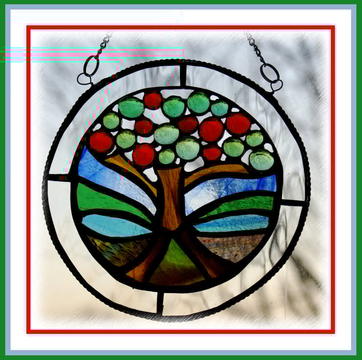 This is a unique entirely hand-crafted stained glass picture which I designed and made using the Tiffany copper foil technique. I absolutely love it.