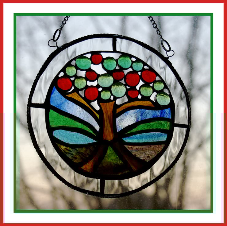 This piece would make a super and very individual present. I think it is more like a picture than a suncatcher. It is absolutely unique. I never make two things exactly the same, I always use slightly different colours and textures of glass.