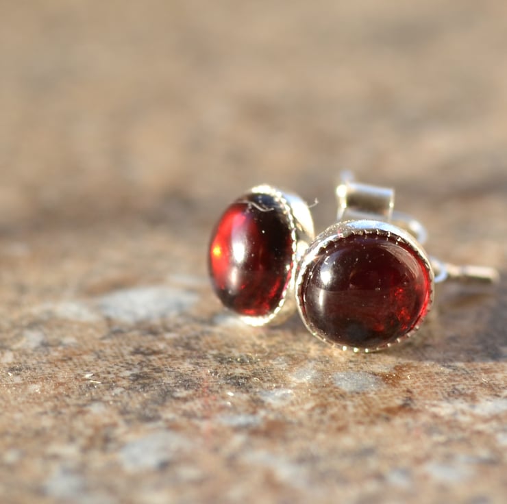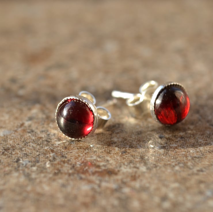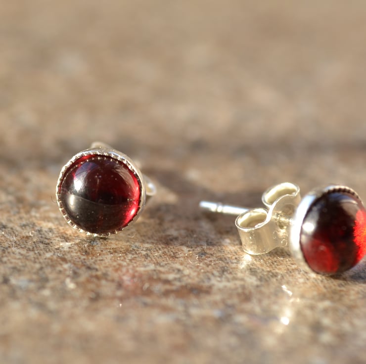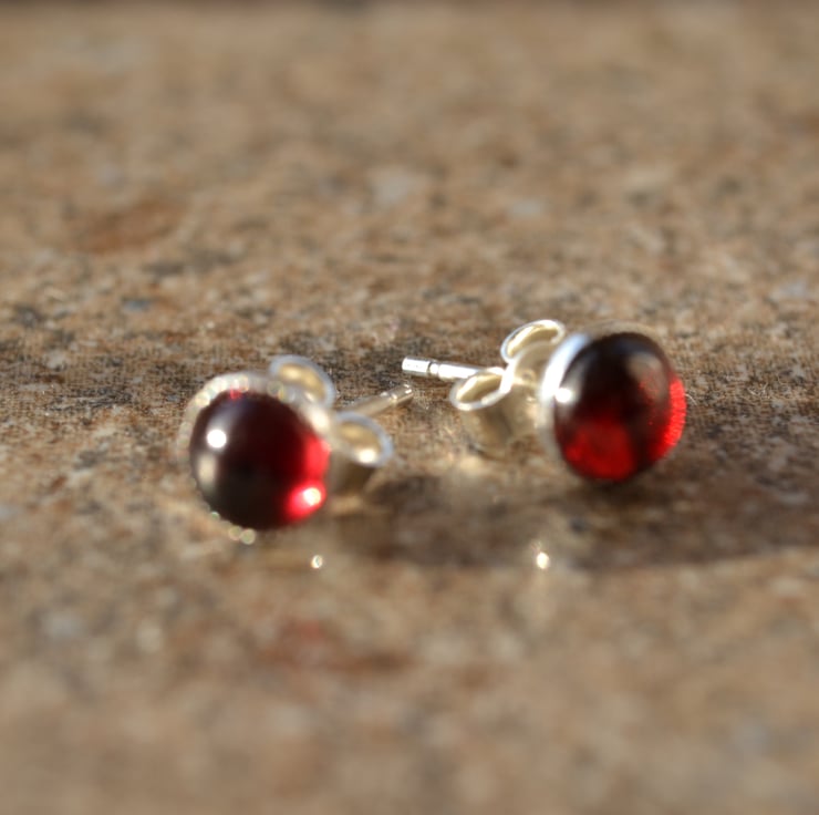 A beautiful full round 4mm garnet cabachon, with a deep red garnet held in sterling silver.
