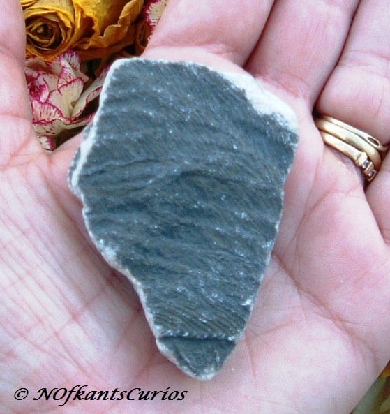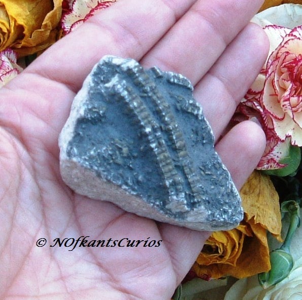 The dimensions of this wonderful specimen is that it measures approx 6cms in length, approx 4cms in width at its widest point near the base of the fossil & with a depth of approx 1.5ms at its thickest point. It is roughly triangular in shape.