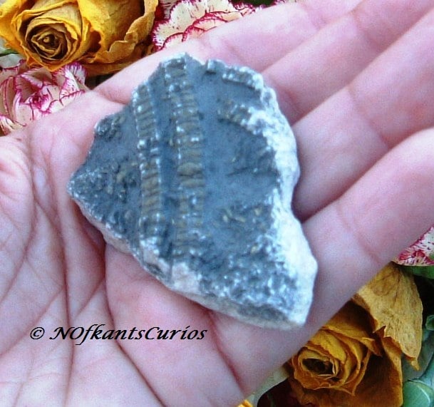 A lovely natural and rustic Crinoid Fossil specimen, ideal for display as it is, or for use in a crafting project, such as mounting in a picture or making the centre piece in a mosaic.