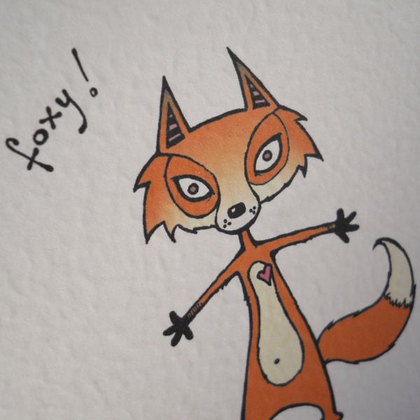 this design is from one of my original hand drawings; drawn in pen and ink, before being scanned in and coloured digitally in a funky foxy orange, it is then printed onto good quality textured white card (300gsm).