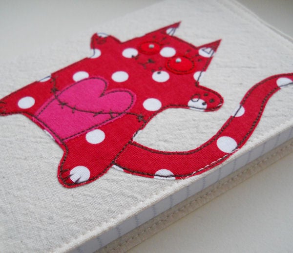 zombie kitten embroidered fabric notebook cover & A6 notebook.