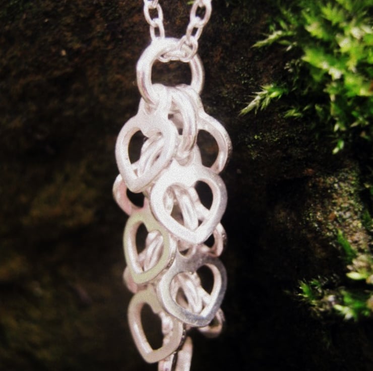 Ten teeny tiny little silver heart charms all link together to form a beautiful freefall clustered effect. The hearts measure around 5mm, and the actual drop is around 3cm. Are you in the mood for love???