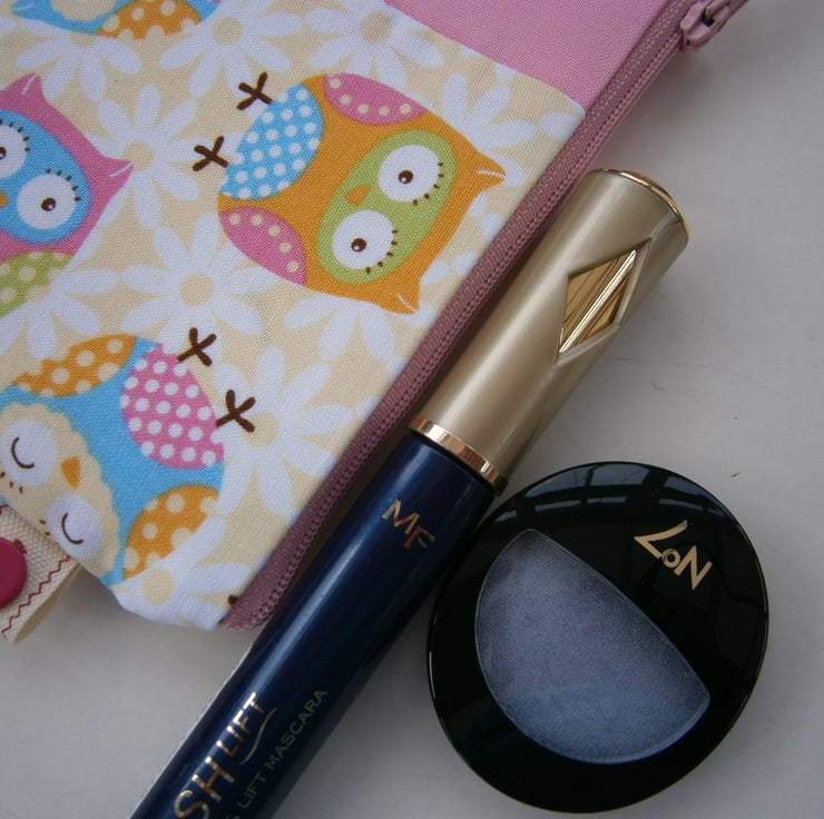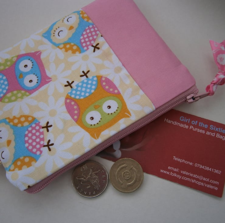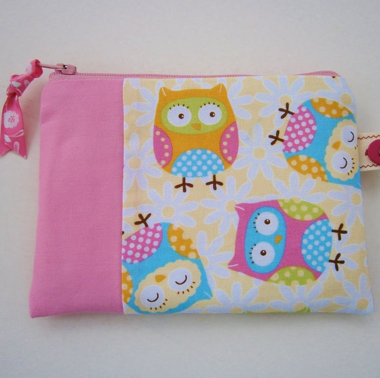 Little owls make up / pencil case with contrasting zipper , ribbon and lining