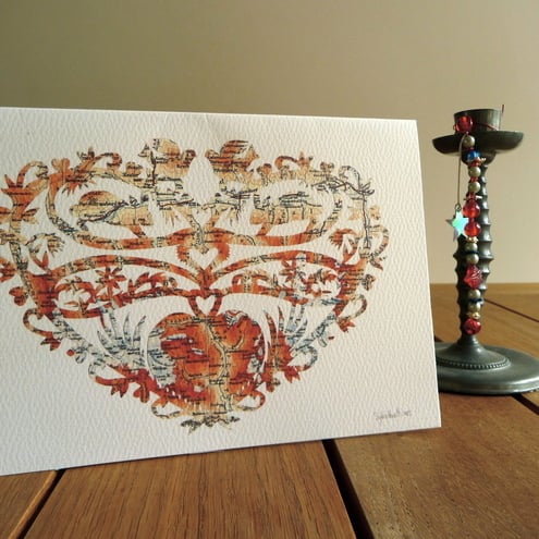 This is a lovely print of an original design by myself of a papercut that I did on old vintage maps. It is printed on white cards which has a slight texture.
