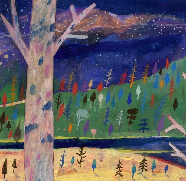 This colourful, quirky and magical illustration was created using gouache paints, ink, charcoal oil pastels and coloured pencil.