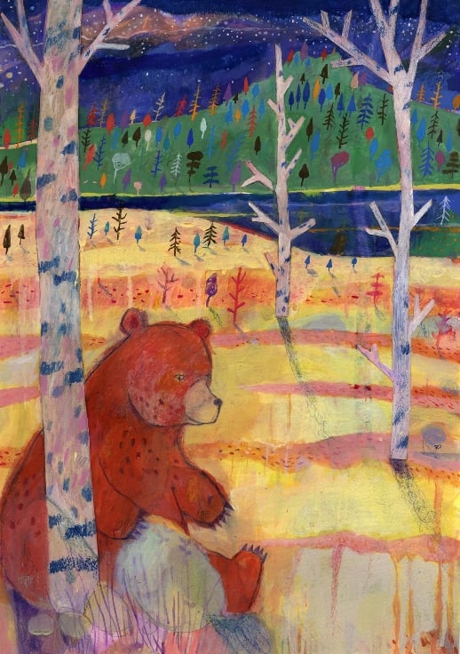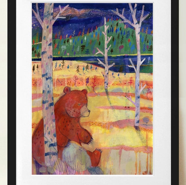 Brand new for this year! Part of the folk art series, and a brand new addition to the portfolio - Beware the grizzly bear that lives in woods! inspired by the folk and fariy tales old and new,