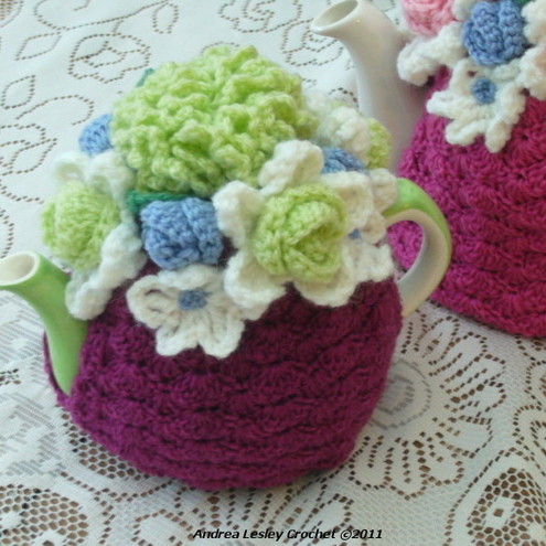 2-Cup Crochet Tea Cosy with Flower Garden Top (Made to order)