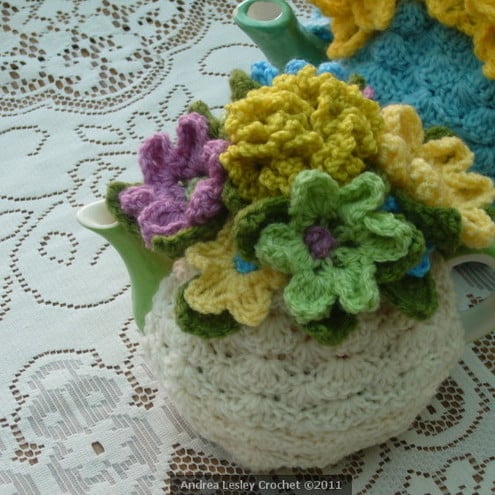 2-Cup Crochet Tea Cosy/Cosie/Cozy - Cream with flowers (Made to order)From andrealesleycrochet
