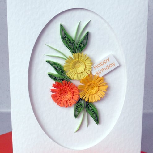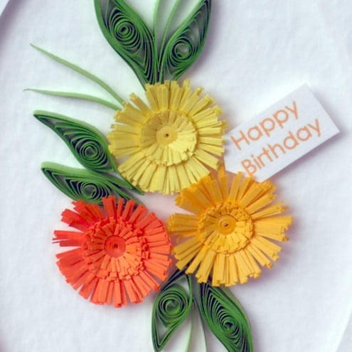 A very pretty and unusual quilled birthday card – you will not find anything like this in the shops.