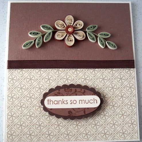 A beautiful quilled thank you card with quilling flowers, in sophisticared colours of chocolate and cream.