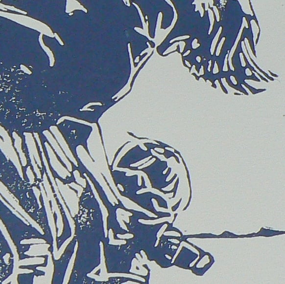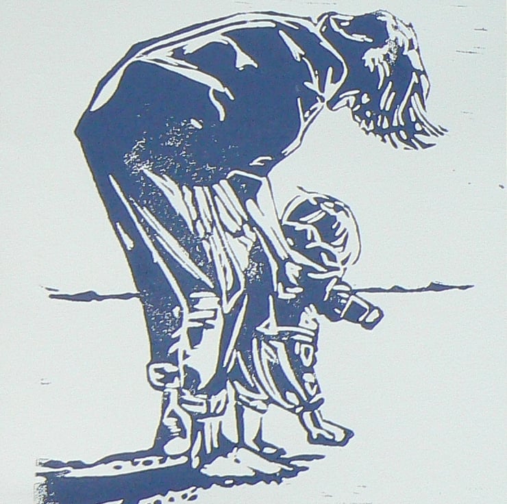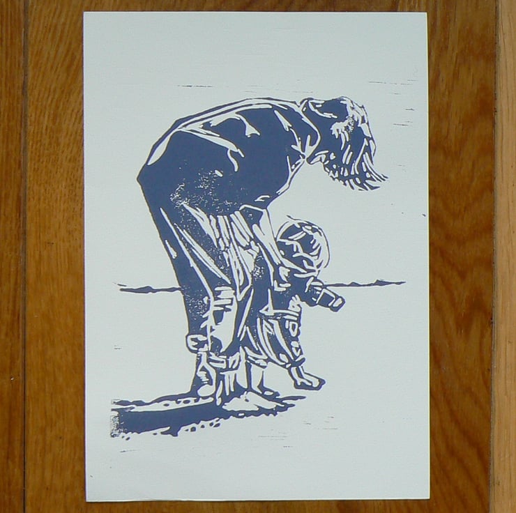 A portrait is all about a moment, a memory. This lino cut is a portrait of my eldest daughter and me, Ellen took her first steps the week of her first birthday. She is fourteen now, and even more beautiful, but I relive that moment, every time I see the picture.