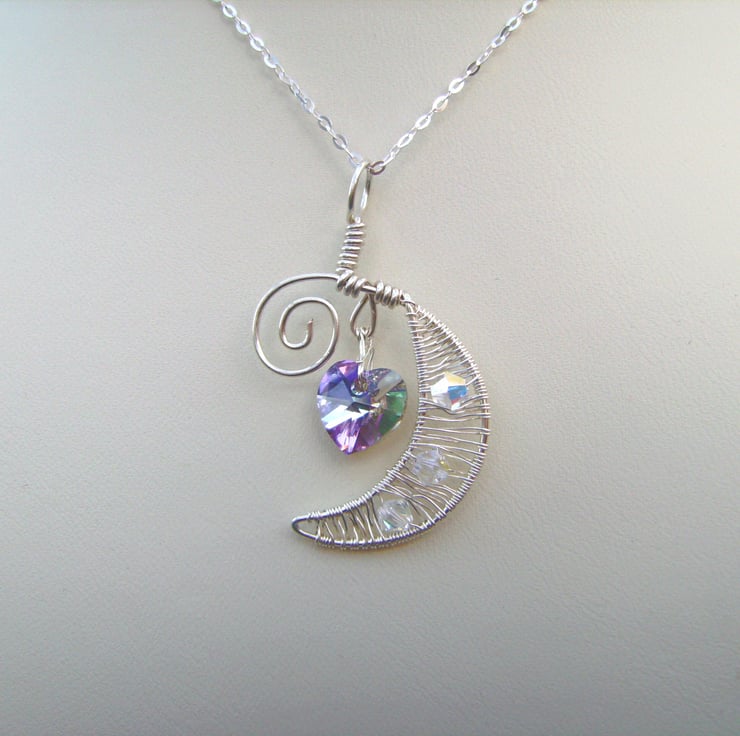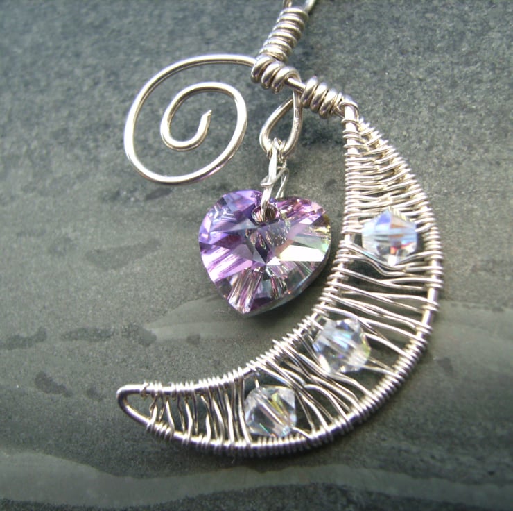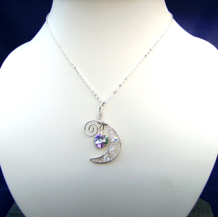 This pendant has been created using sterling silver wire, a swarovski crystal heart & clear swarovski crystal beads. It is hung on a 925 silver chain (18 inches). The weight of silver is below the 7.78g required for hallmarking, but there is a 925 stamp on the chain.