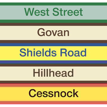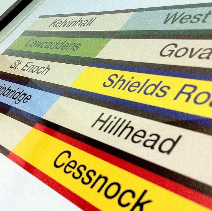 All of Glasgow's famous subway signs - all true to their own unique and original typography and colour!