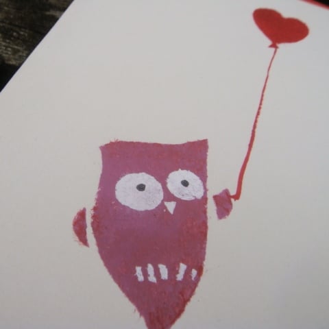 This cute owl card is an original design created with love and humour for that special occasion, hand painted using stencilling. My cards are all handmade using recycled card and envelopes. Each one is A6 presented with a red envelope in biodegradable clear sleeve.