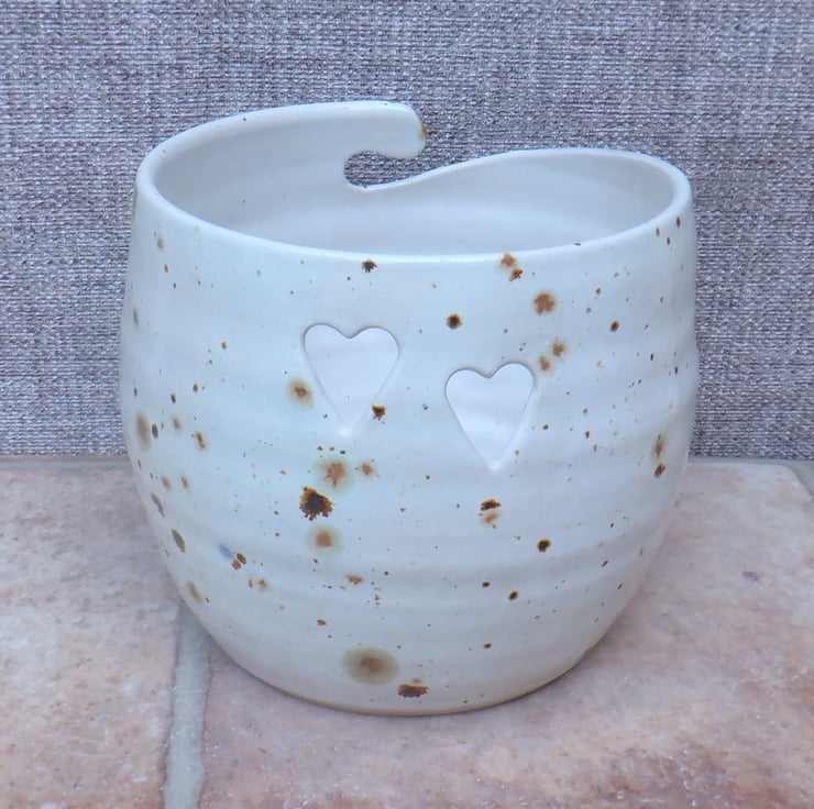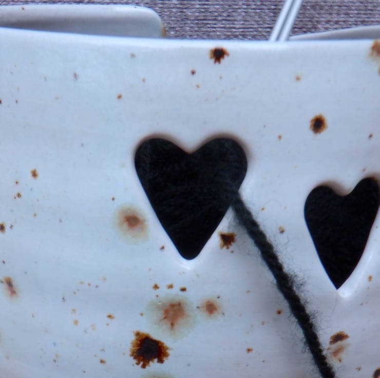 With little hearts cut out for the wool to pass through, it will stop the yarn skidding around under the furniture.