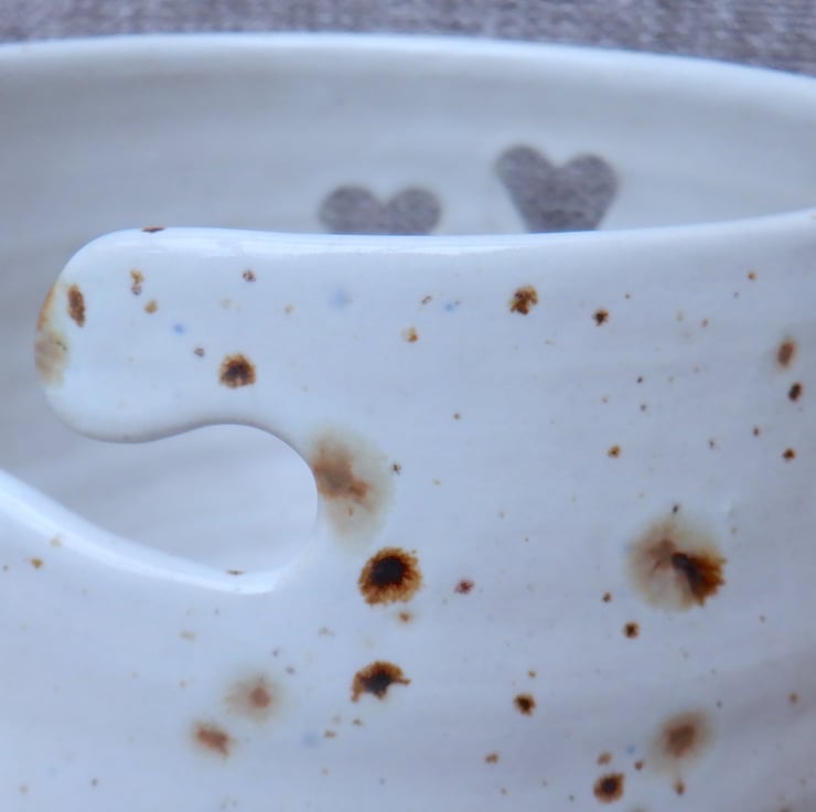 The bowl was thrown by me on my pottery wheel using strong off-white stoneware clay and then carved it out whilst still damp.