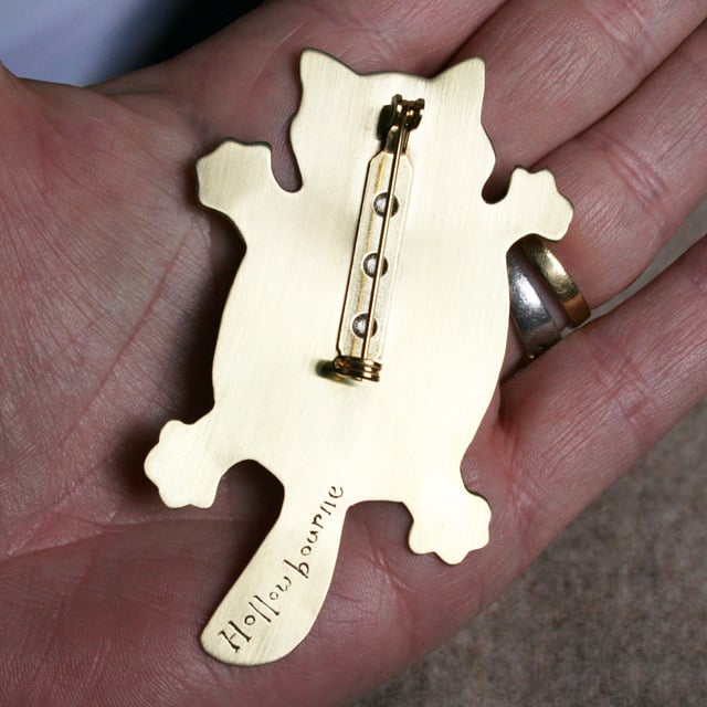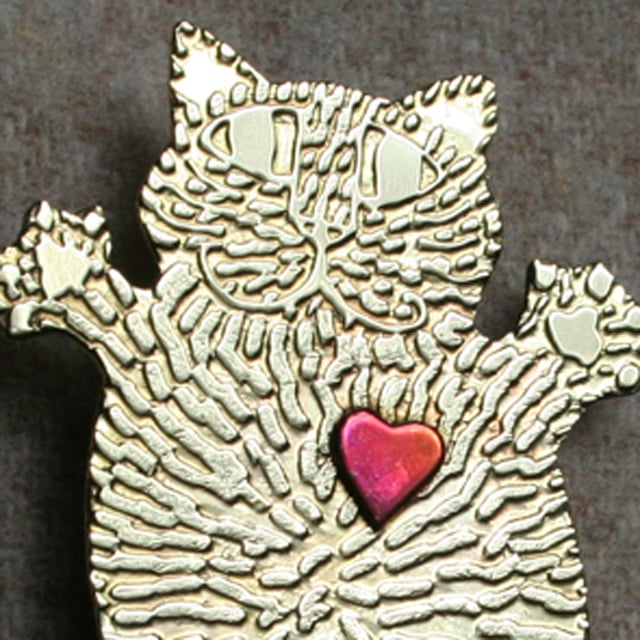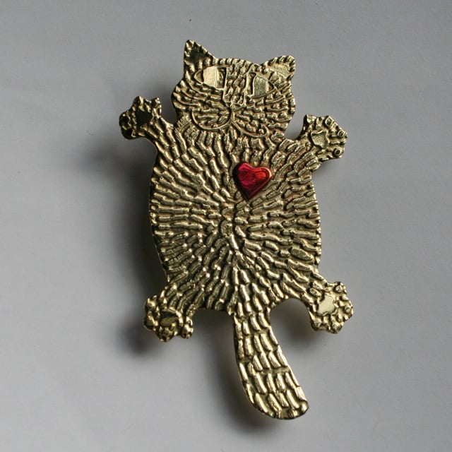 Happy flat fat cat brooch with a heart. perfect gift for Valentine or Mother's day.