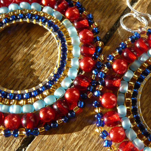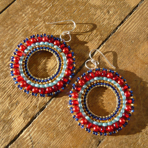 These lovely earrings are made of seed beads and glass beads with silver plated earwires.