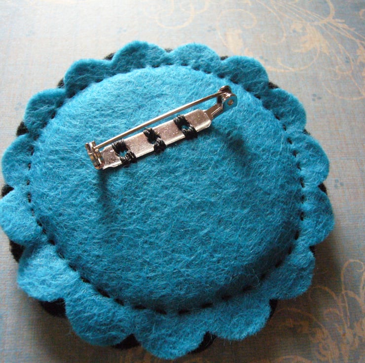 70mm black felt background turquoise reverse 30mm brooch pin