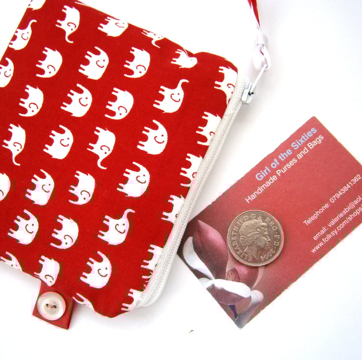 Very cute little elephants printed fabric coin purse, perfect for all your cards, notes and change and make up