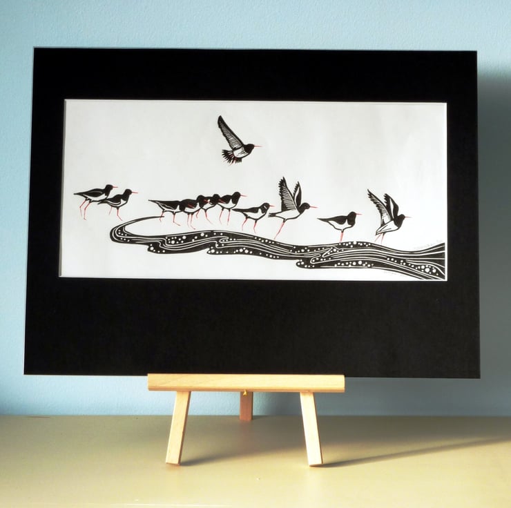 ORIGINAL lino print - 'Oystercatchers'