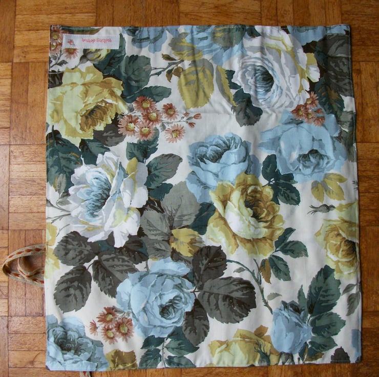 I have used a lovely antique rose print cotton fabric to create this useful knitting needle case. It is lined with a plain cream coloured cotton fabric.