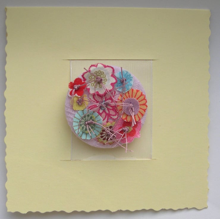 The textile piece can be removed from the card and pinned to scarves, decorate bags and adorn your jackets, hats etc