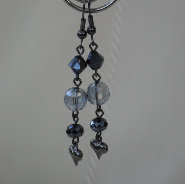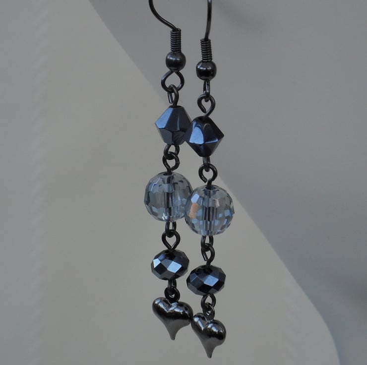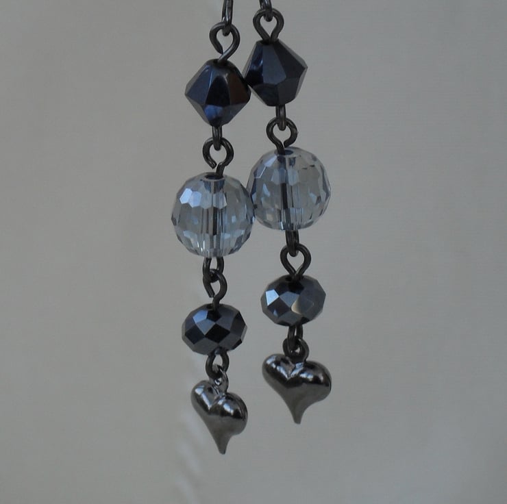 A mix of beautiful blue crystals together with a small gunmetal heart charm make up these earrings.