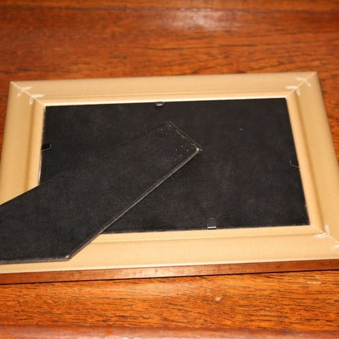 This mirror measures 6x4 and has been placed into a deep gold toned frame.The landscape frame has a stand at the back.
