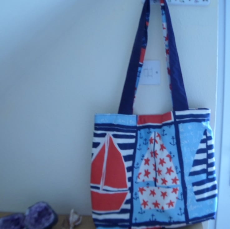 I had this bright cotton material and decided to make this beautiful beach bag.