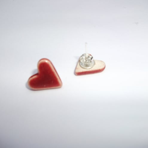 These little red hearts are made from white earthenware clay and decorated with a rich red glaze.