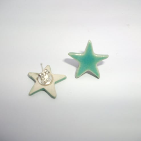 These little studs are made from white earthenware clay and glazed in a lovely icy blue.