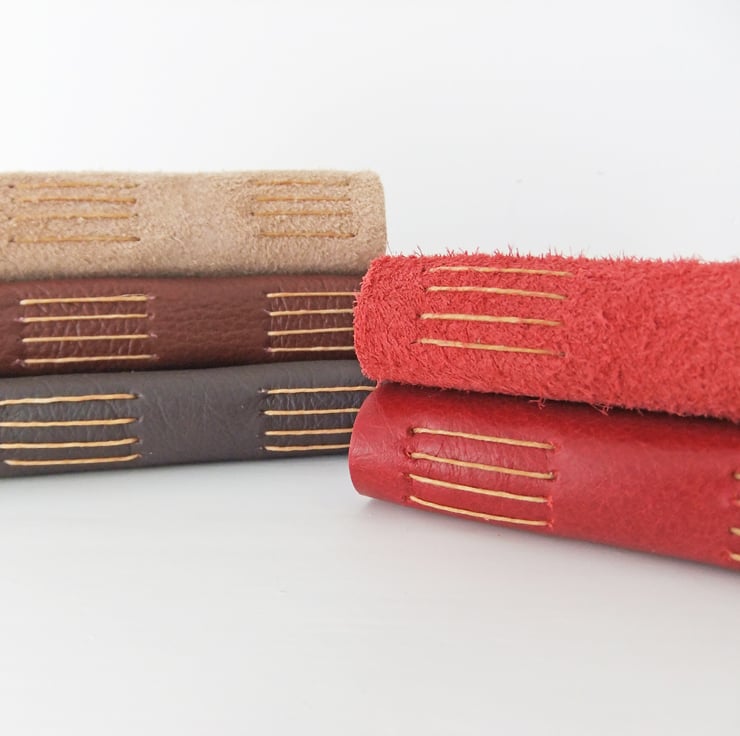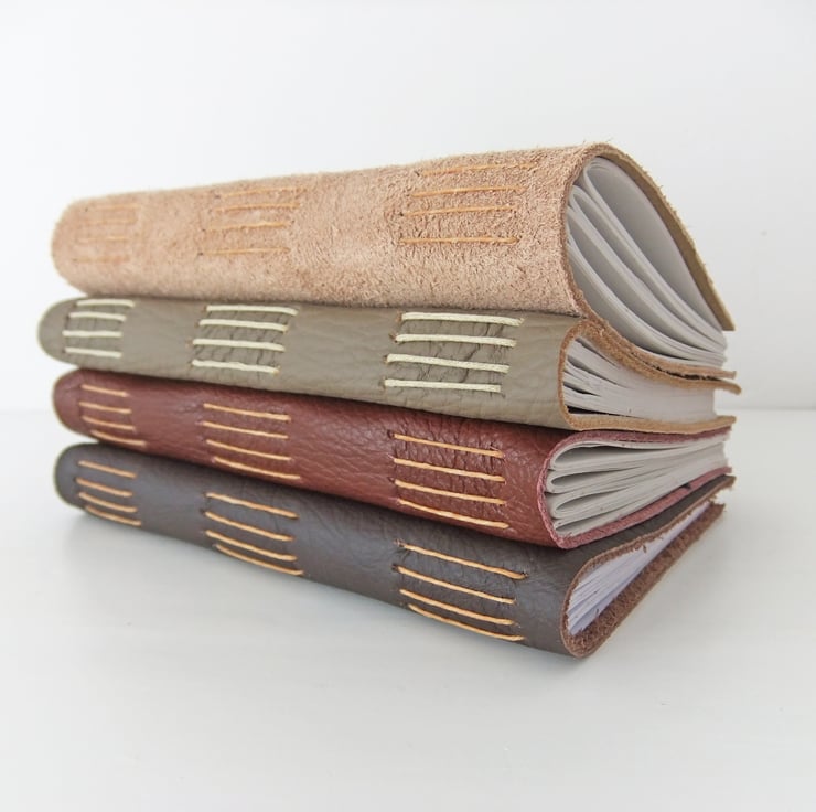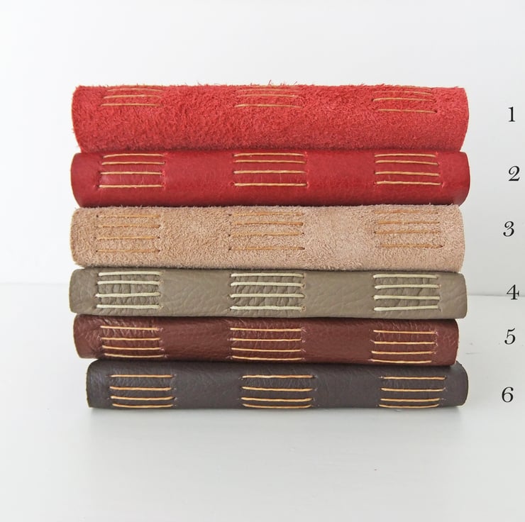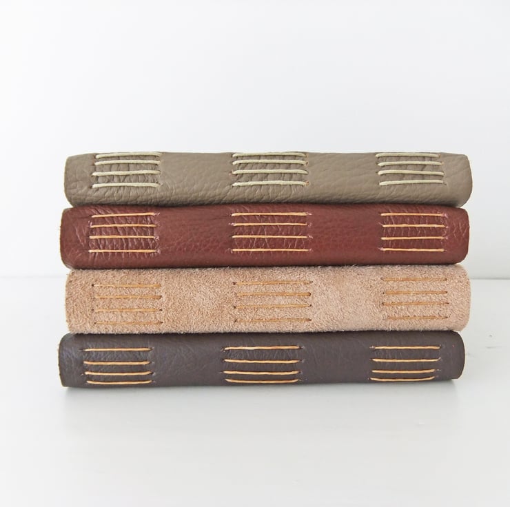 (4) coffee - the coffee journal available is sewn with the same thread as the other journals shown here and NOT the colour of thread shown on the coffee journal in the photo - SOLD