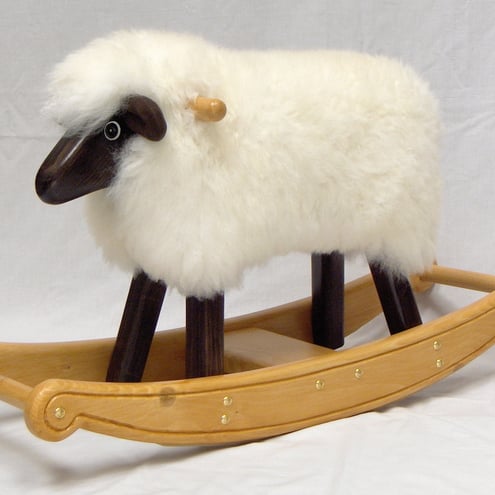 Each rocking sheep or lamb has been carefully crafted and based around a sturdy frame of solid renewable timber. The frames are then finished with a non–toxic, water based lacquer and covered with a genuine, luxury fleece, shaped and stitched by hand.