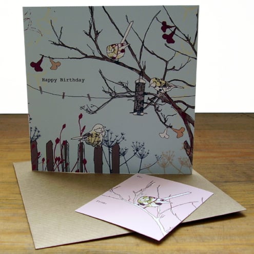Designed by myself then printed onto 220gsm matt photographic paper and mounted onto 300gsm recycled card for a professional finish. My details are stamped on the back, the inside is left blank for your own message.