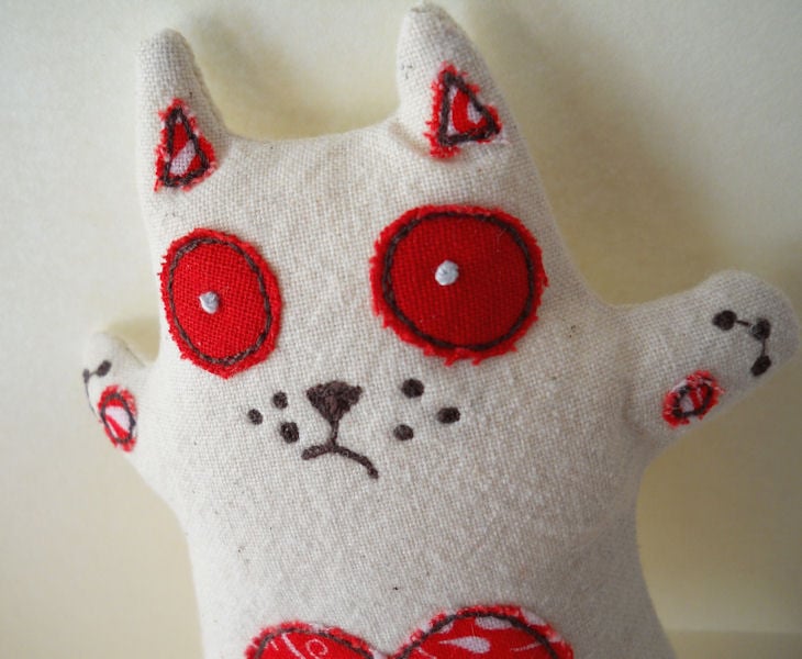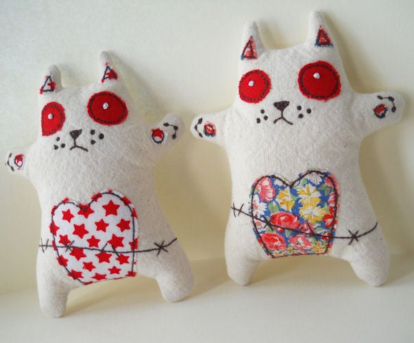 based on original drawings by Little Black Heart, each zombie cat is unique, and entirely handmade by me on a domestic sewing machine.