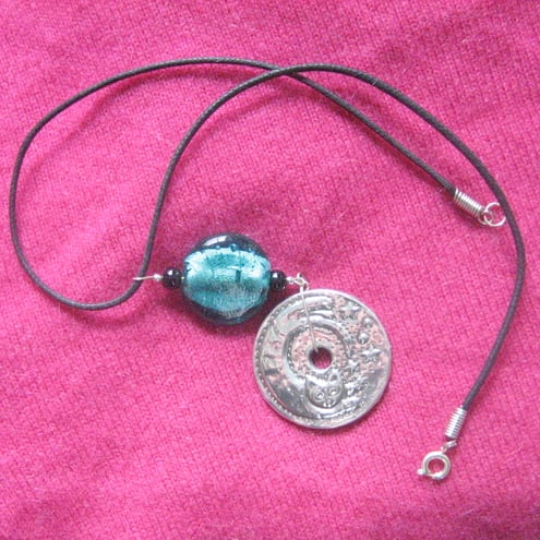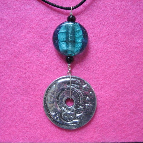 This stunning piece features an agile cat leaping for the stars.It has been individually hand-made in modern lead-free pewter and is finished with a beautiful green glass stone(although it looks blue in the photo).It comes on a 40cm black thong in a gift pouch.