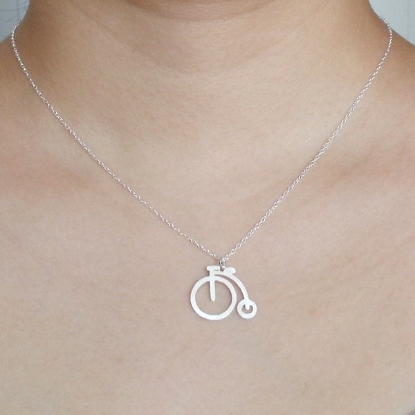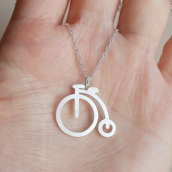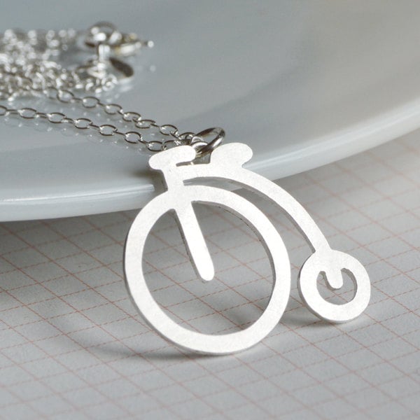 This penny farthing necklace is handmade at my studio in Cornwall, UK