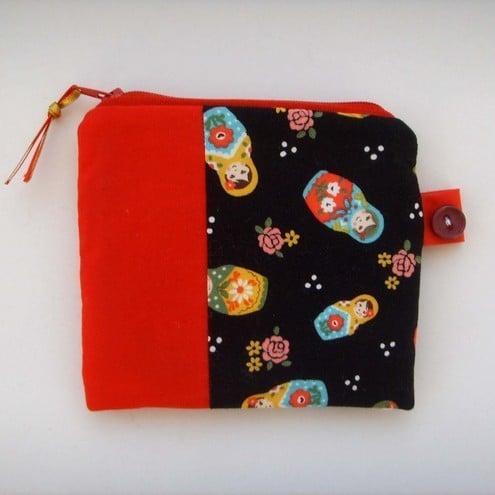 Cute little coin purse with contrasting zip, ribbon and lining. Perfect for your coins, credit cards and all the little things hanging around in the bottom of your handbag.