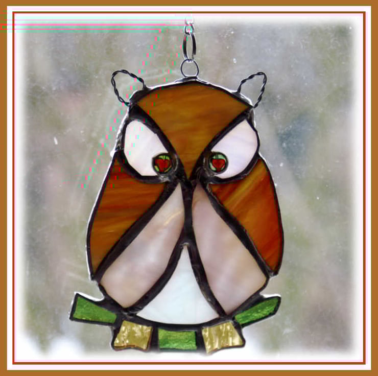 The suncatcher hangs from a little chain which is securely attached to the top of the owl.