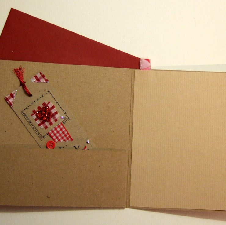 The card itself measures 14cm x 14cm, is made of kraft coloured card and has a matching blank insert for your own personal message. It comes with a red envelope and wrapped in a cello bag.