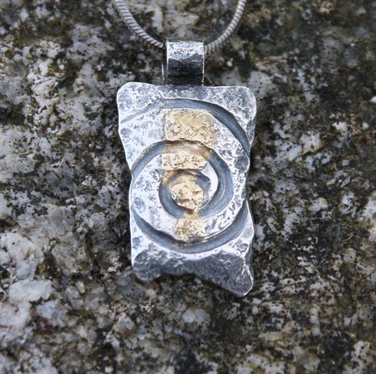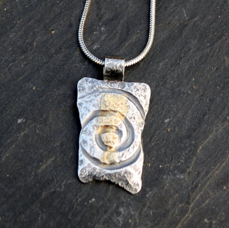 One of a kind sterling silver and 18ct gold Celtic spiral pendant, with 18 inch silver snake chain.