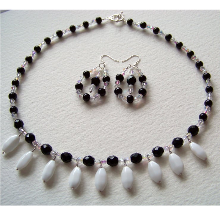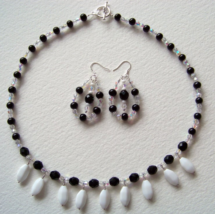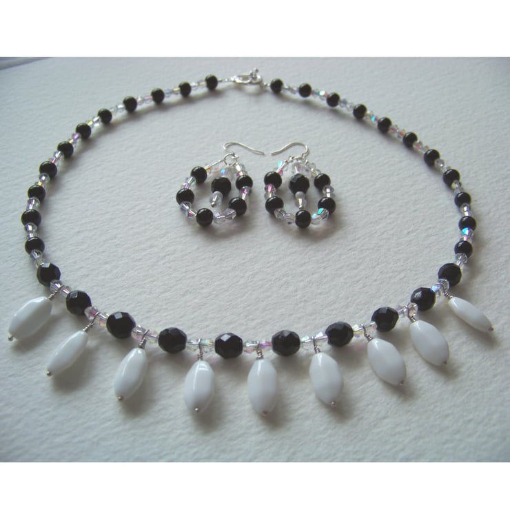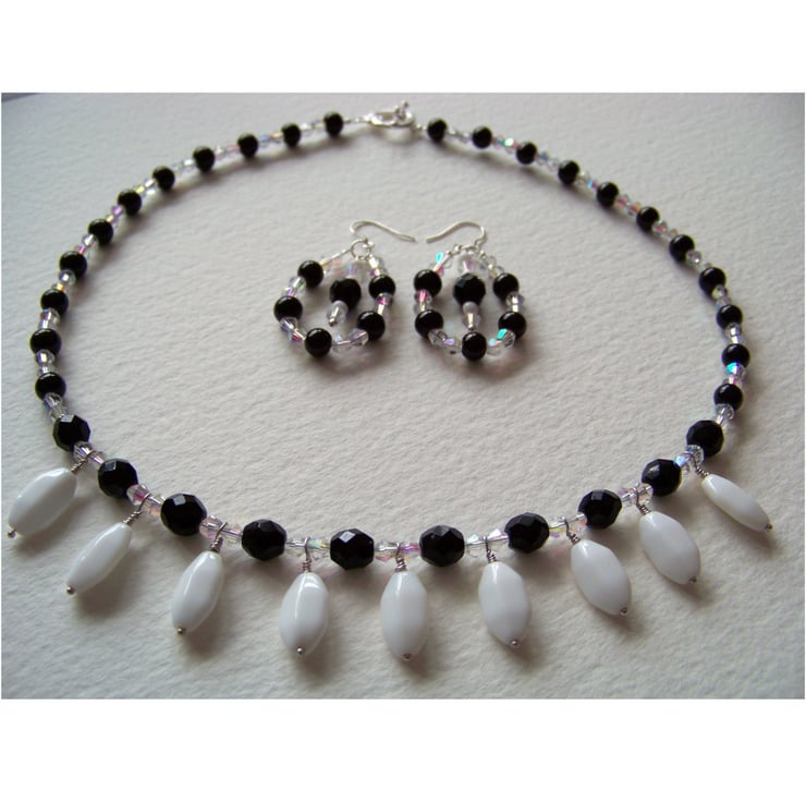 Black & White Crystal Necklace with Co-ordinating Earrings