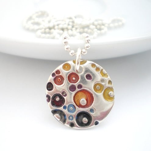 The fine silver pendant measures 1.8cm in diameter and is hung on a 16 inch sterling silver ball style chain (also available on an 18 inch chain on request).